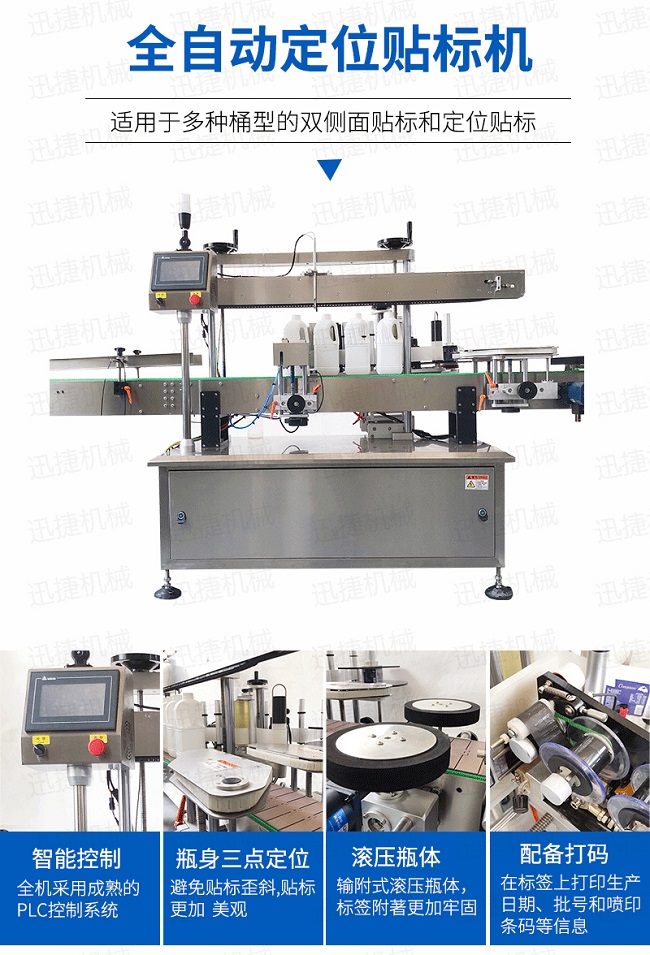 全機(jī)采用微電腦-PLC-電子光纖傳感器控制系統(tǒng),使整機(jī)運(yùn)行穩(wěn)定、高速操作系統(tǒng)采用操作界面控制,操作簡便、實(shí)用、效率高,并有產(chǎn)量記數(shù)功的速度快且穩(wěn)定適用范圍大,可用于各種尺寸的圓形瓶貼標(biāo)輸附式滾壓瓶體,使標(biāo)簽附著更加牢固前后段可選連線使用。