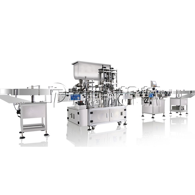 3、 該設備在設計上大大縮短了下料斗到灌裝頭的灌裝距離,克服了含油量大的物料(如:含芝麻粒的辣椒油)在灌裝過程中出現的有些瓶油多,有些瓶醬多的灌裝誤差大的缺點。
